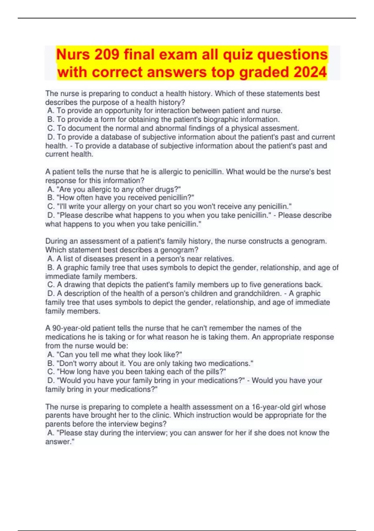 Nurs 209 final exam all quiz questions with correct answers top graded 2024