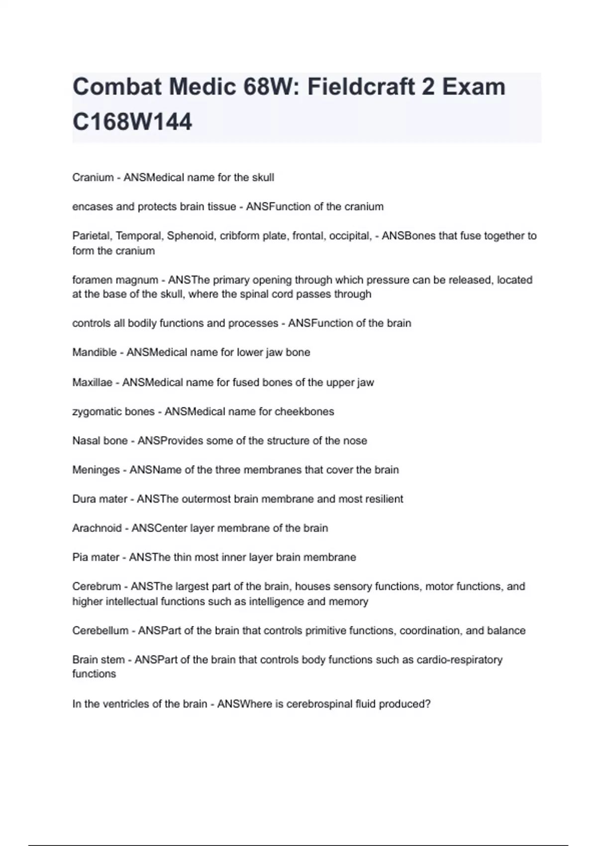 Combat Medic 68W: Fieldcraft 2 Exam C168W144 2024/2025 graded A+ by experts