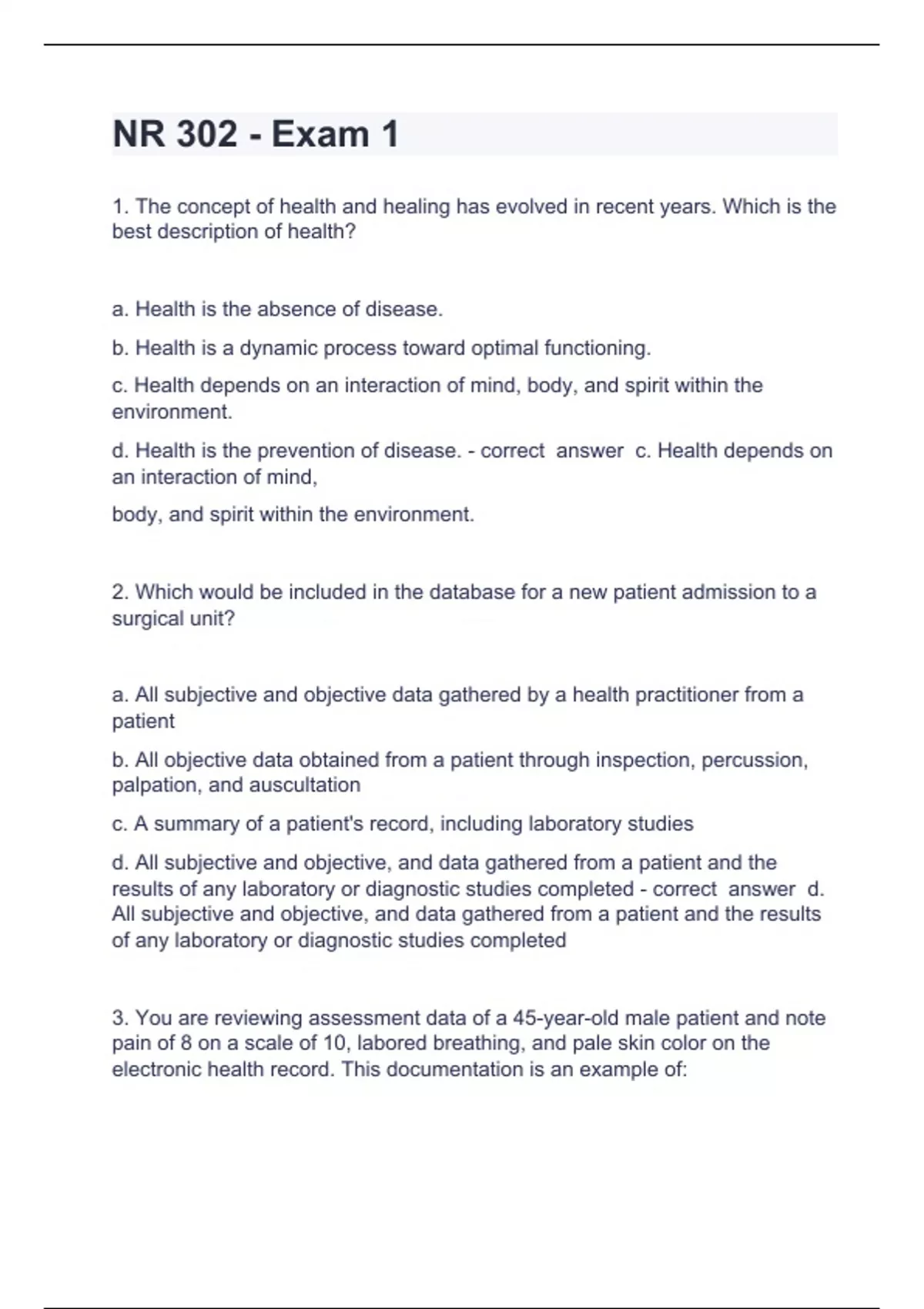 NR 302 NR 302 Chamberlain College Nursing - Question and answers correctly solved 2024