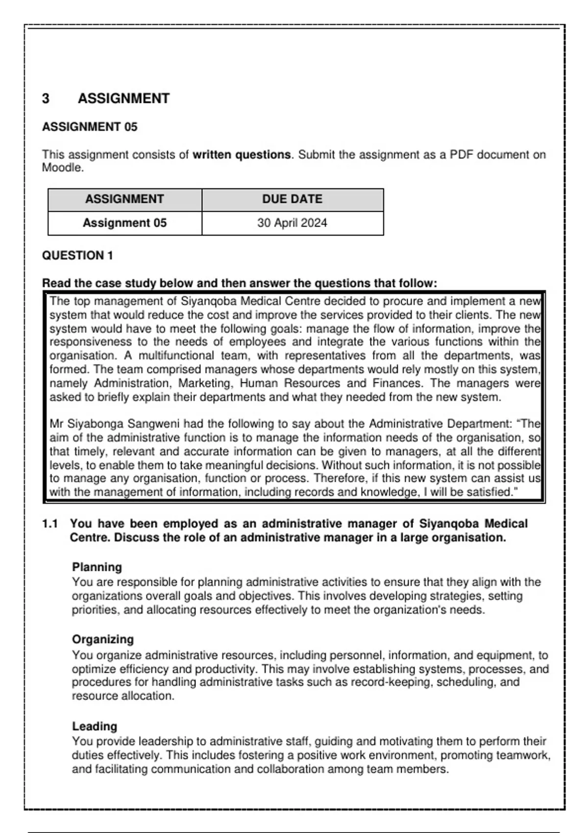 1.1 You have been employed as an administrative manager of Siyanqoba Medical
