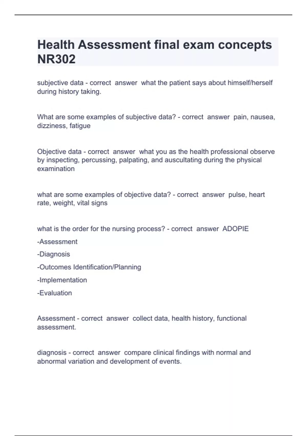 health assessment final exam concepts nr302 nr 302