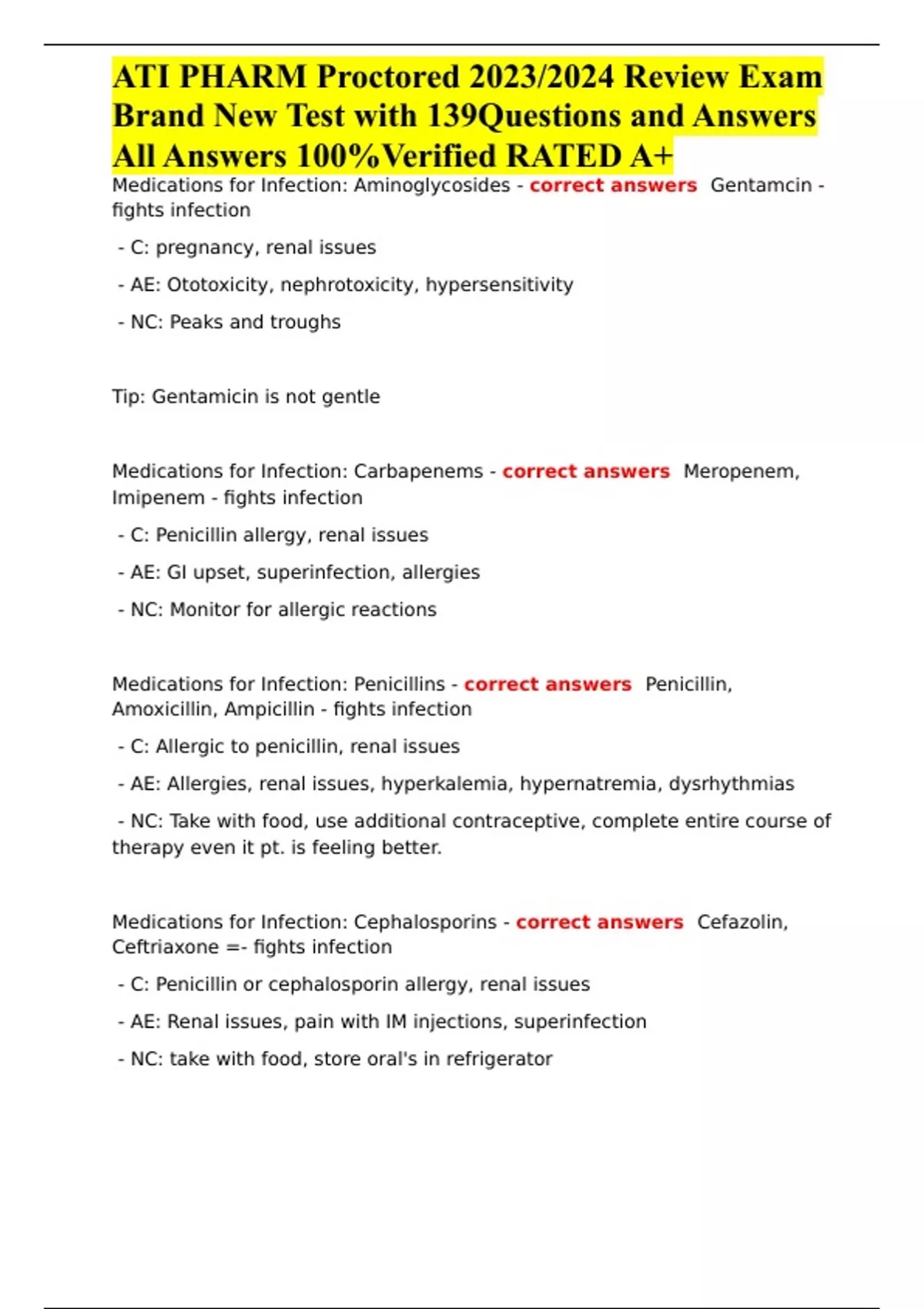 ATI PHARM Proctored 2023/2024 Review Exam Brand New Test with 139Questions and Answers All Answers 100%Verified RATED A+