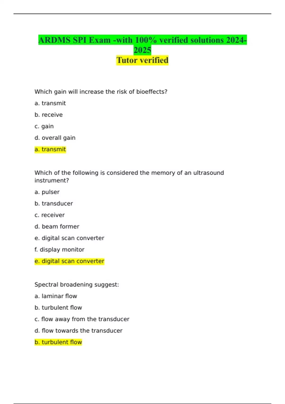 ARDMS SPI Exam -with 100% verified solutions