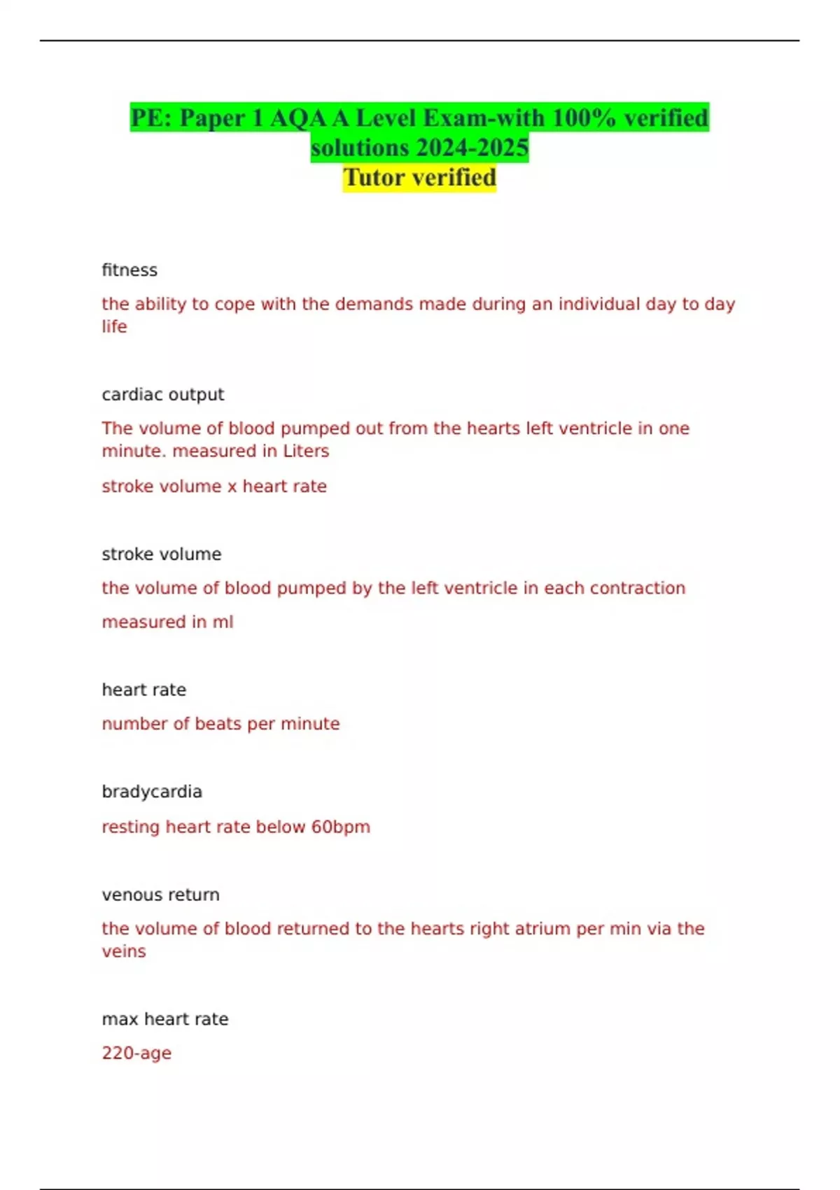 PE: Paper 1 AQA A Level Exam-with 100% verified solutions