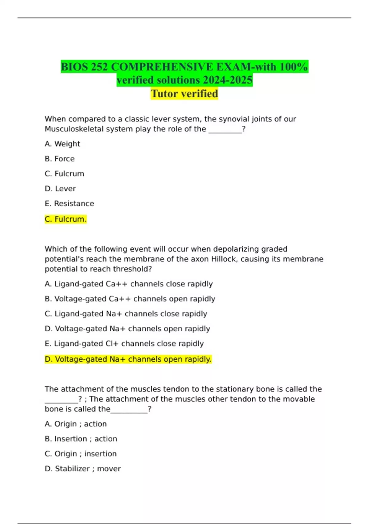 BIOS 252 COMPREHENSIVE EXAM-with 100% verified solutions
