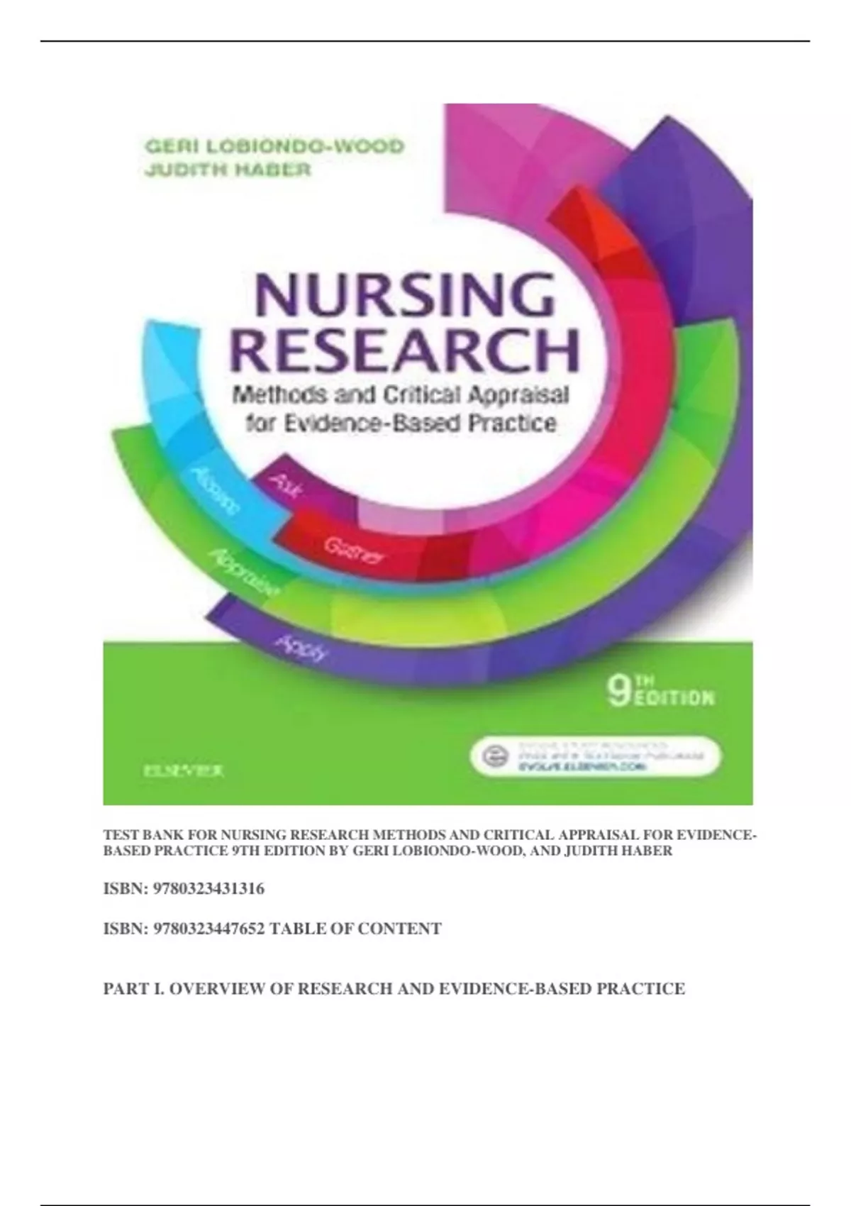 TEST BANK FOR NURSING RESEARCH METHODS AND CRITICAL APPRAISAL FOR EVIDENCE BASED PRACTICE 9TH EDITION BY GERI LOBIONDO WOOD