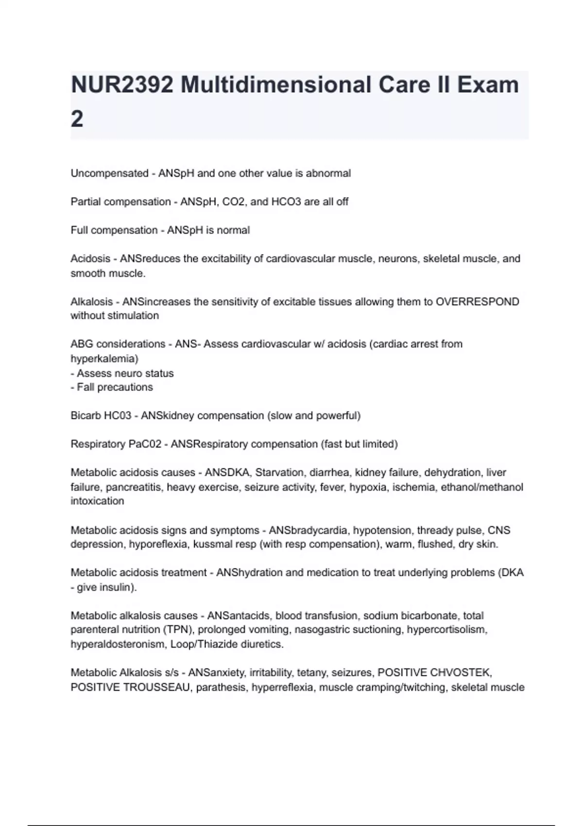 Alkalosis - ANSincreases the sensitivity of excitable tissues allowing them to OVERRESPOND