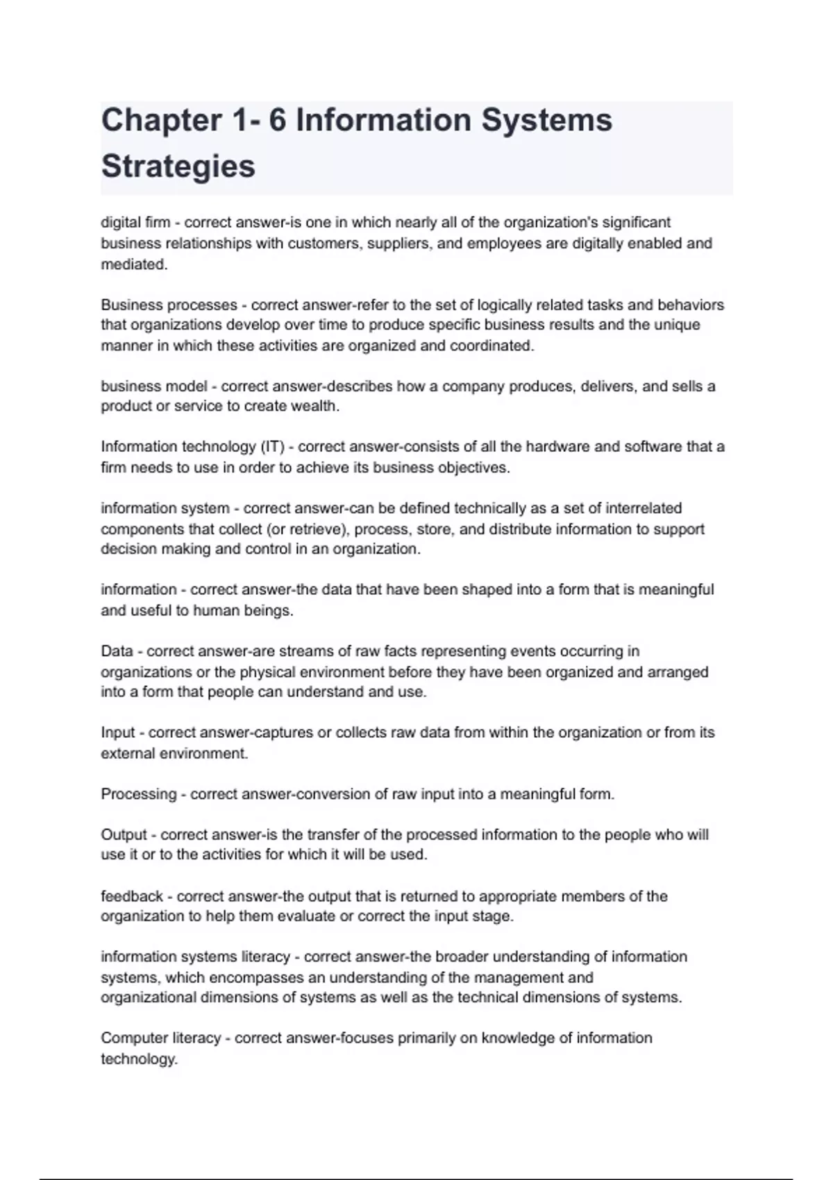 Chapter 1- 6 Information Systems Strategies
