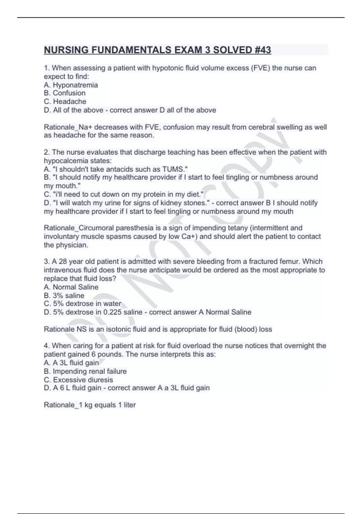 NURSING FUNDAMENTALS EXAM 3 SOLVED #43
