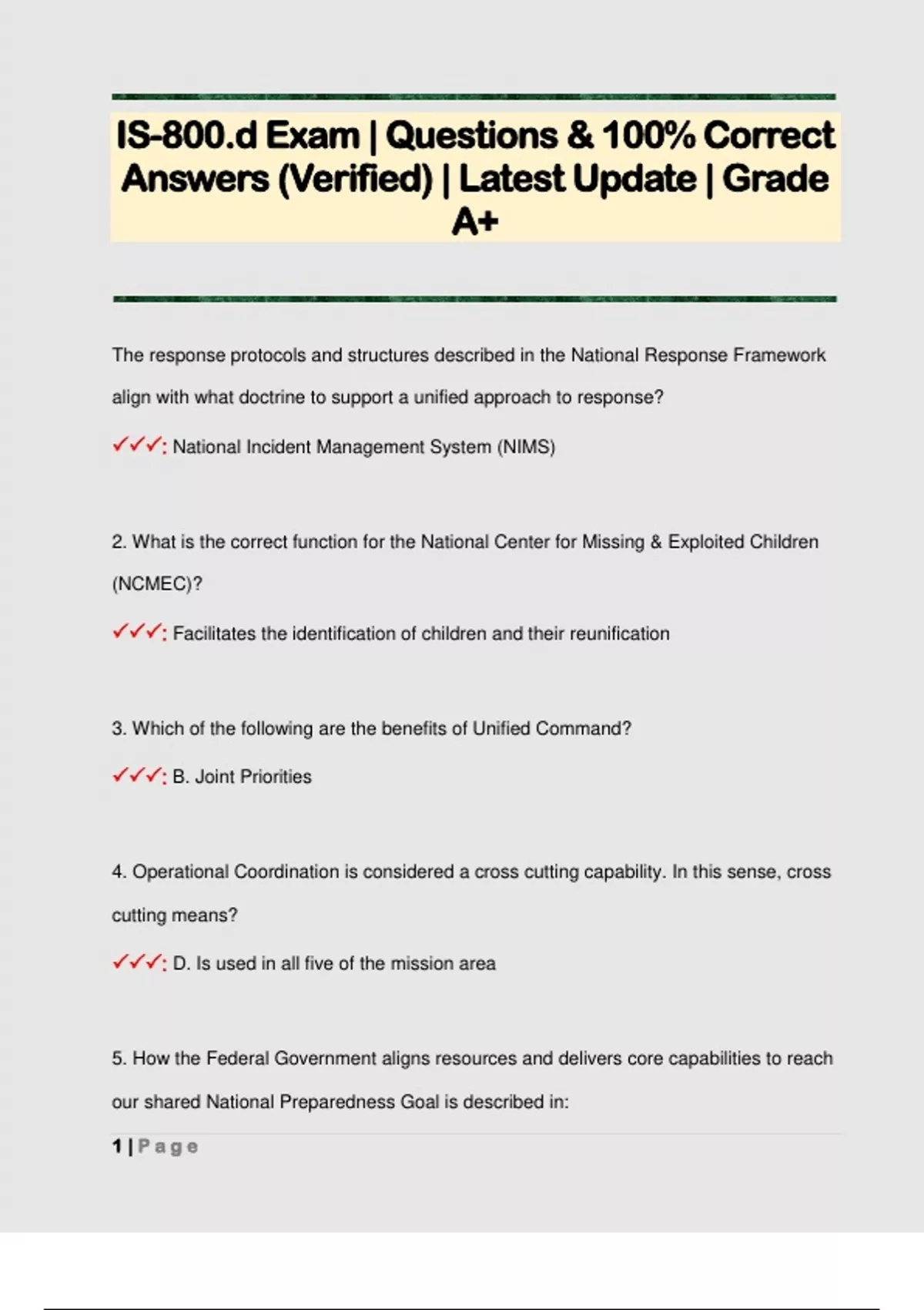 IS-800.d Exam | Questions & 100% Correct Answers (Verified) | Latest Update | Grade A+