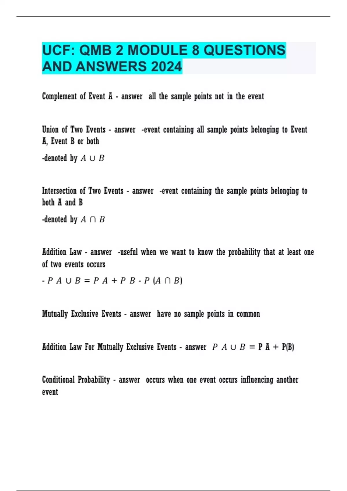 UCF QMB 2 MODULE 8 QUESTIONS AND ANSWERS 2024.