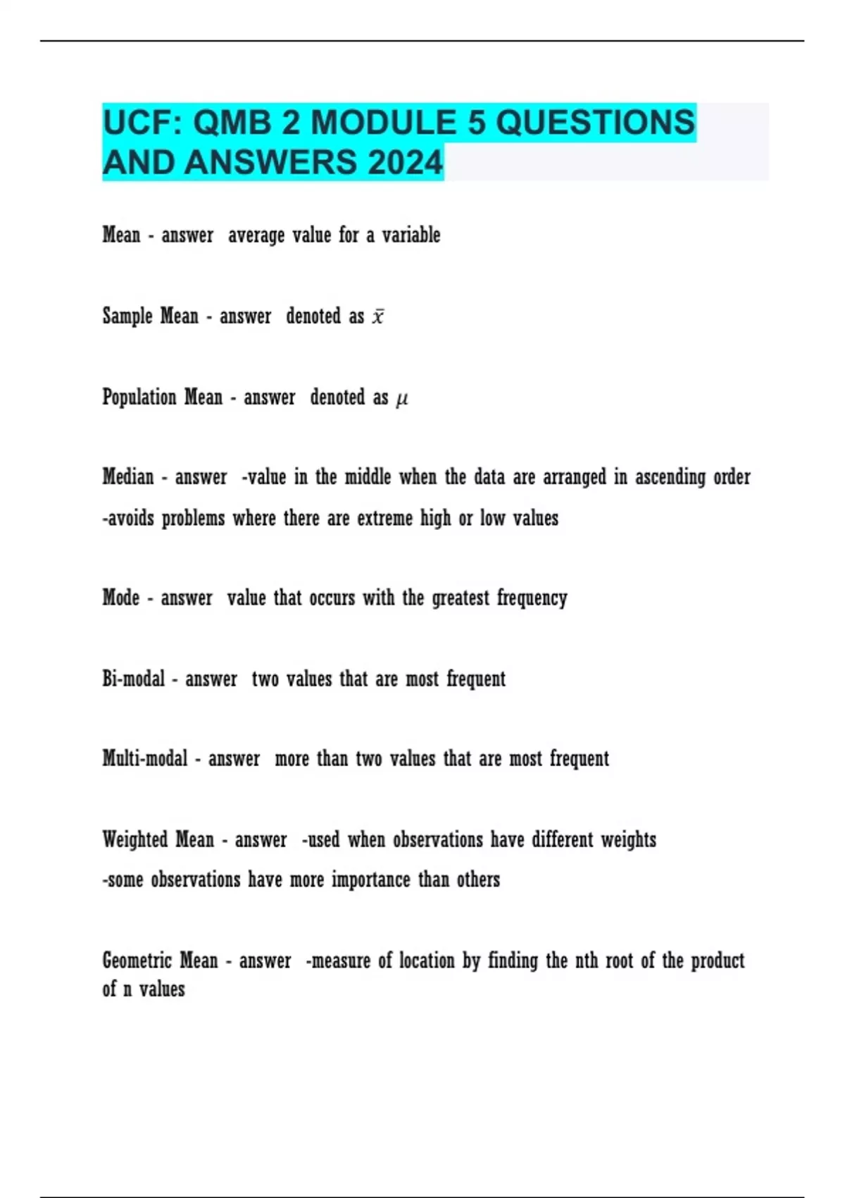 UCF QMB 2 MODULE 5 QUESTIONS AND ANSWERS 2024