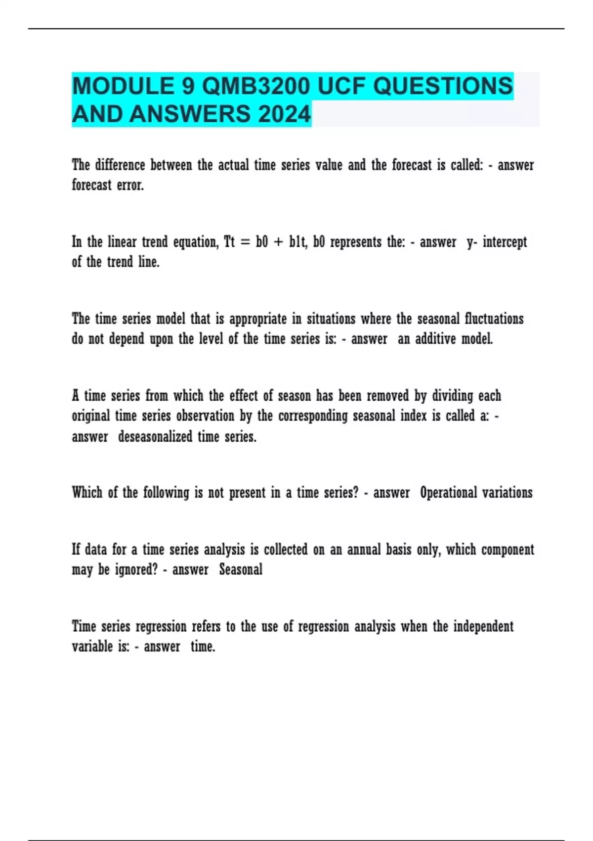 MODULE 9 QMB3200 UCF QUESTIONS AND ANSWERS 2024.