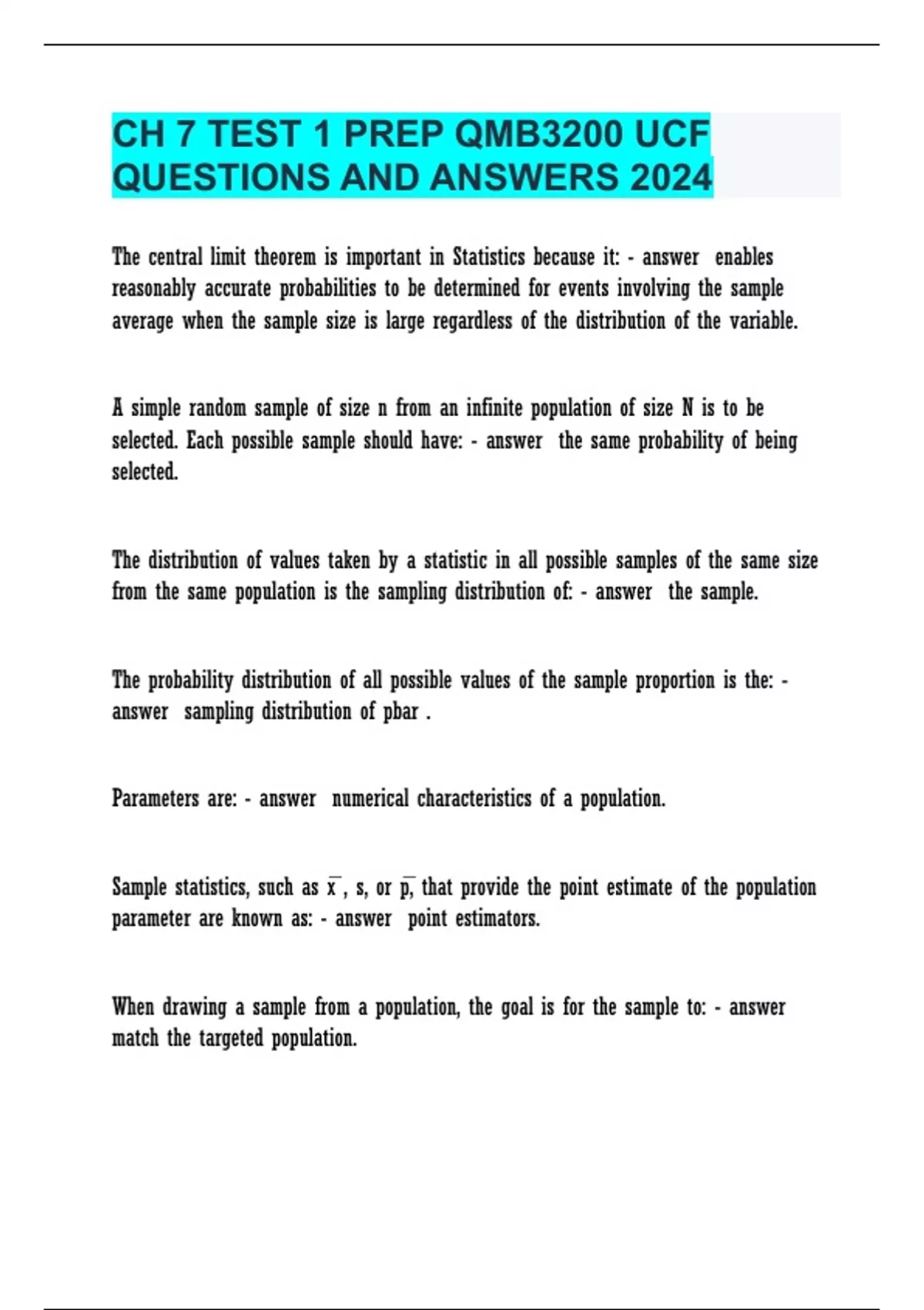 CH 7 TEST 1 PREP QMB3200 UCF QUESTIONS AND ANSWERS 2024.