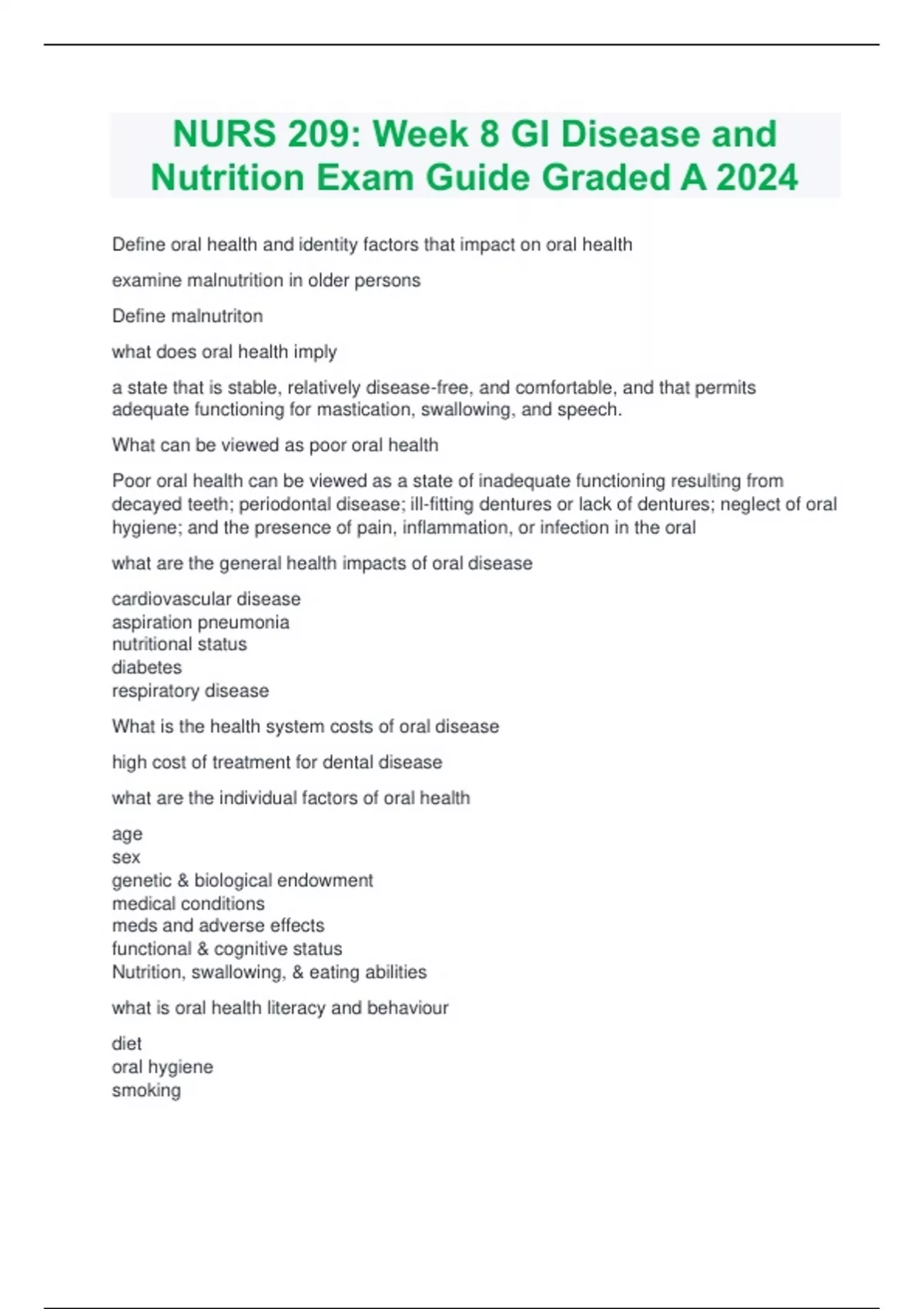 NURS 209: Week 8 GI Disease and Nutrition Exam Guide Graded A 2024