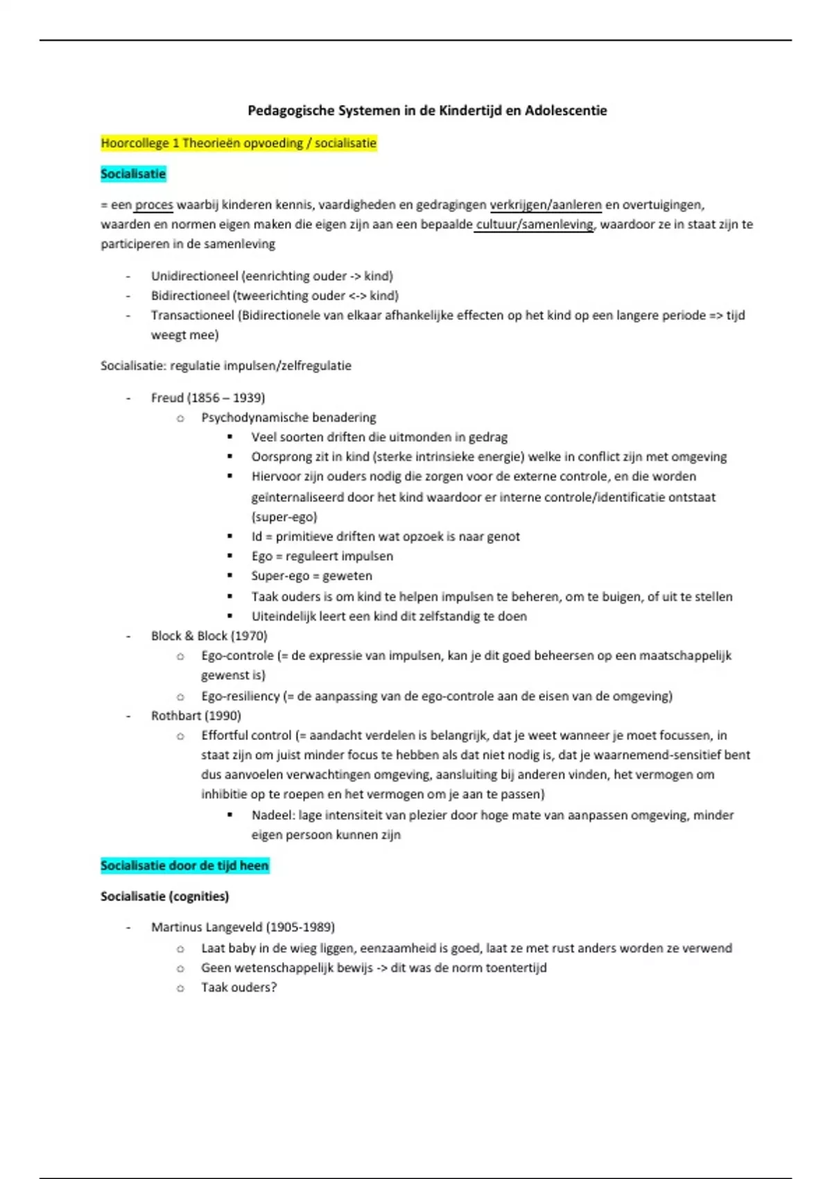 Hoorcollege 1 Theorieën opvoeding / socialisatie