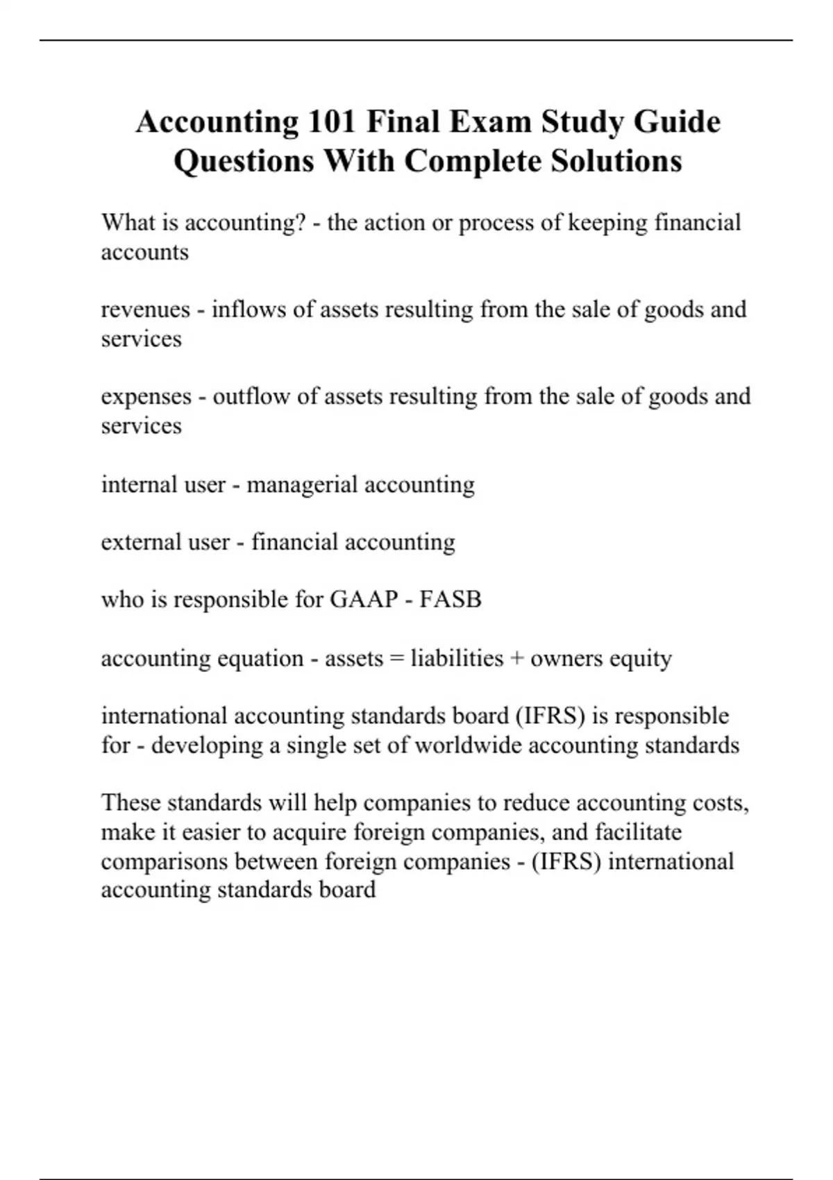 Accounting 101 Final Exam Study Guide Questions With Complete Solutions