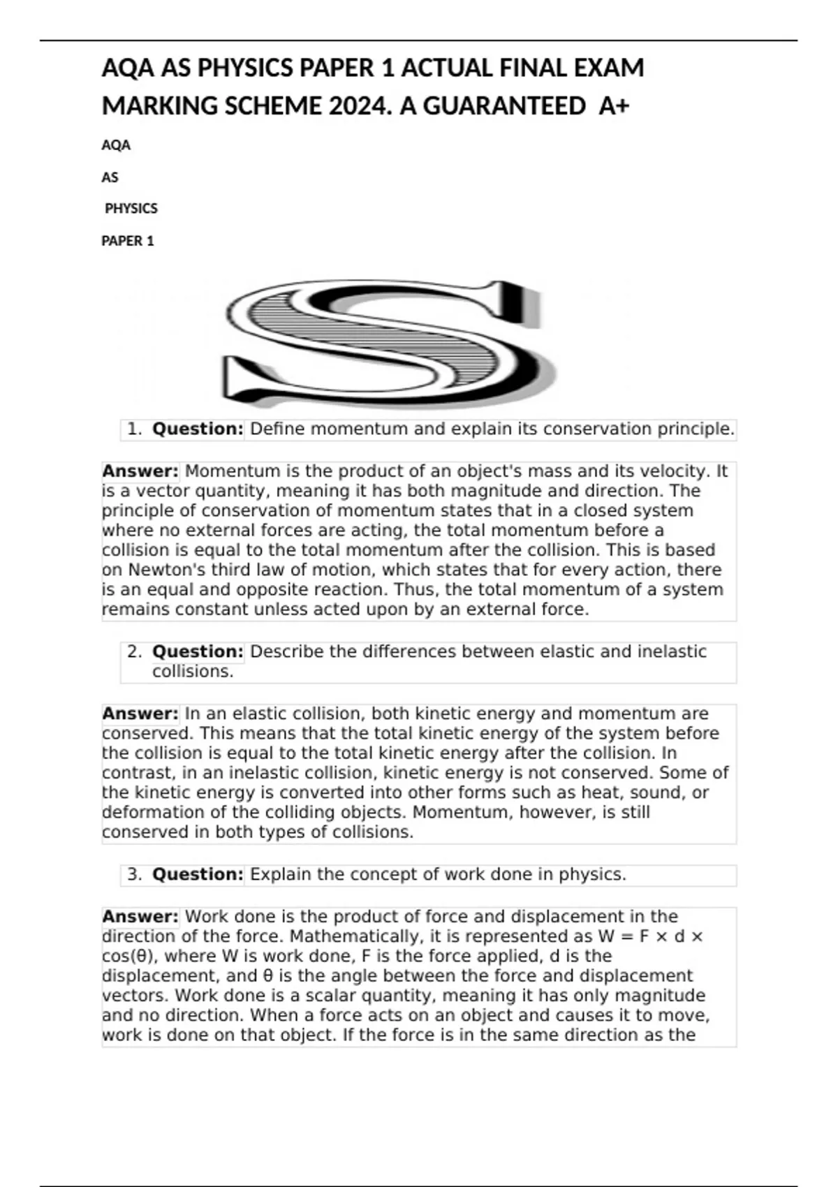 AQA AS LEVEL PHYSICS PAPER 1 FINAL EXAM MARKING SCHEME 2023. A GUARANTEED A+ AQA AS PHYSICS PAPER 1