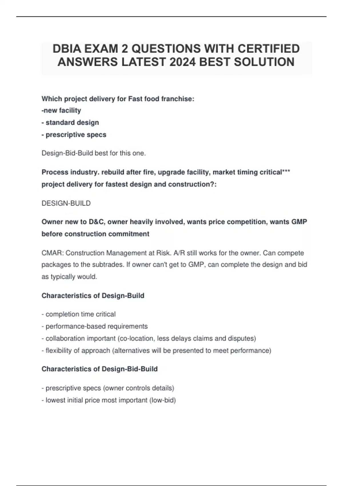 DBIA EXAM 2 QUESTIONS WITH CERTIFIED ANSWERS LATEST 2024 BEST SOLUTION.