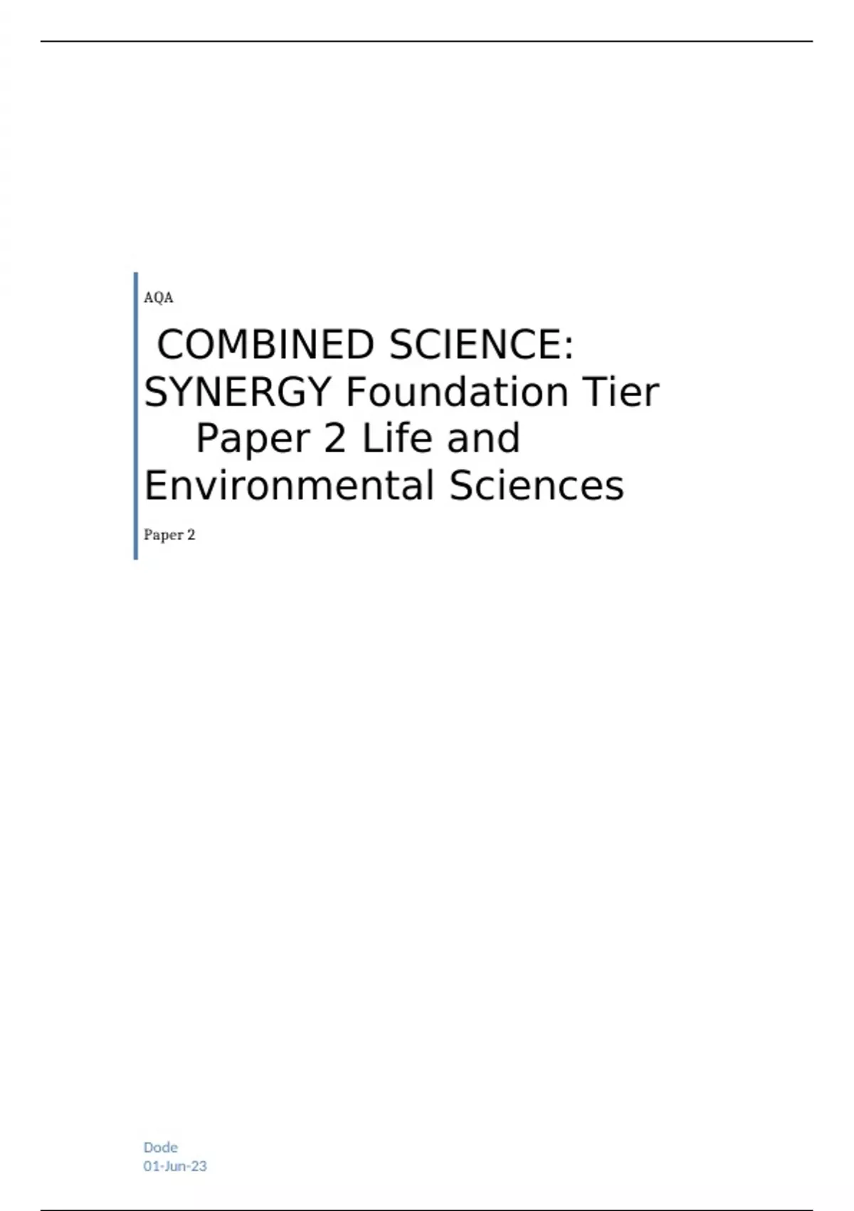 AQA COMBINED SCIENCE: SYNERGY Foundation Tier Paper 2 Life and Environmental Sciences