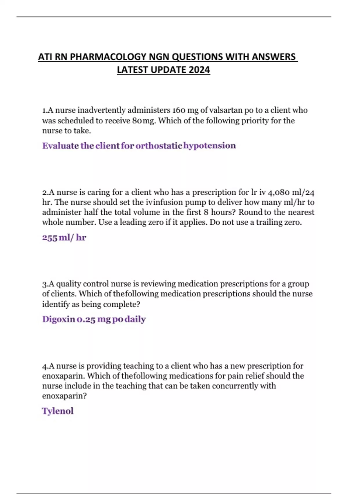 ATI RN PHARMACOLOGY NGN QUESTIONS WITH ANSWERS LATEST UPDATE 2024
