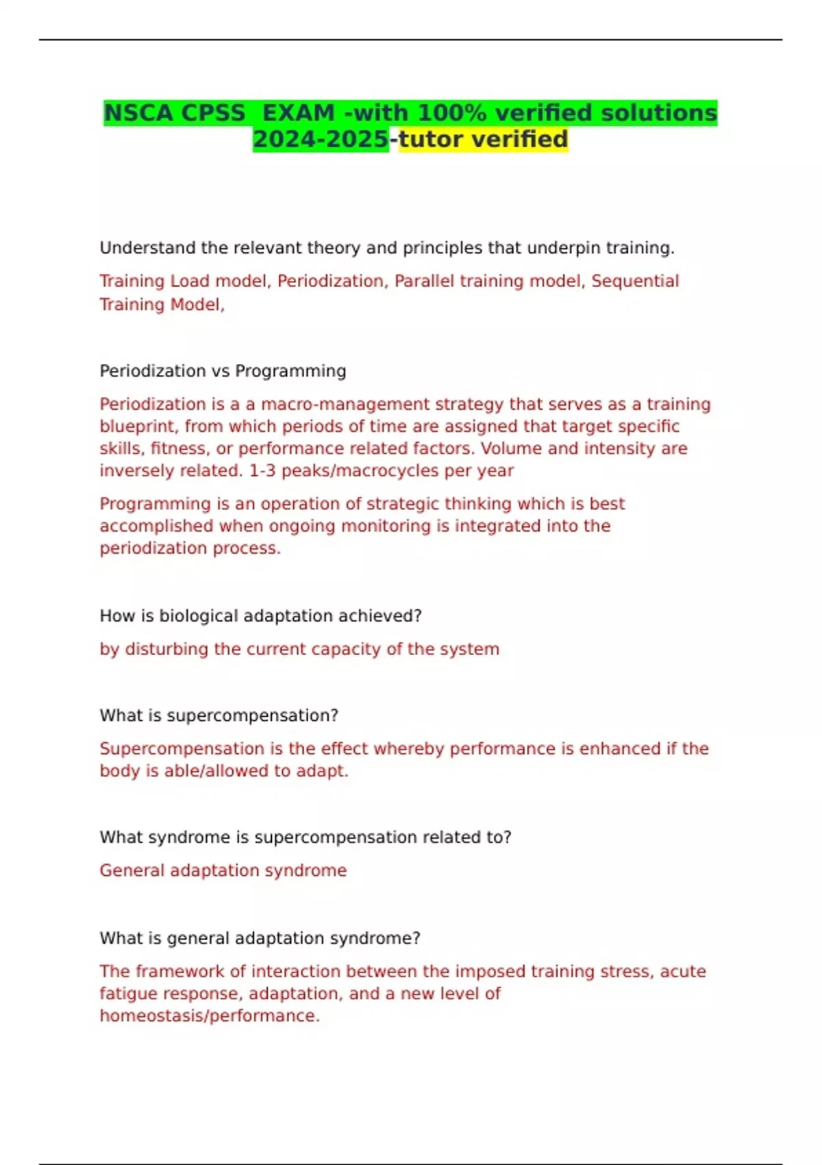 NSCA CPSS EXAM -with 100% verified solutions -tutor verified