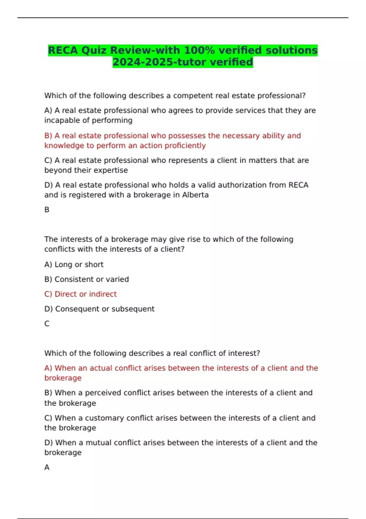 RECA Quiz Review-with 100% verified solutions -tutor verified