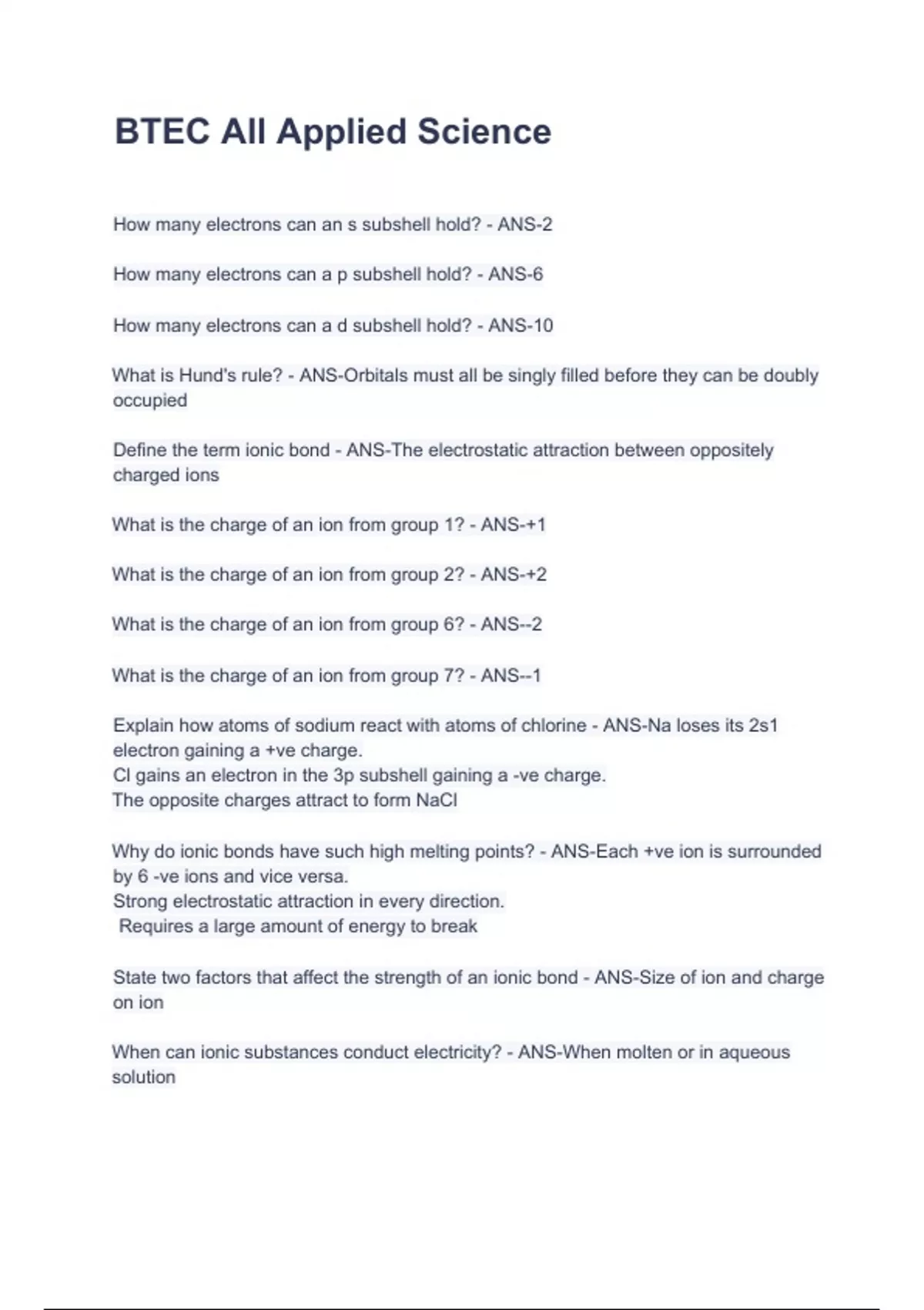 BTEC All Applied Science with complete solution