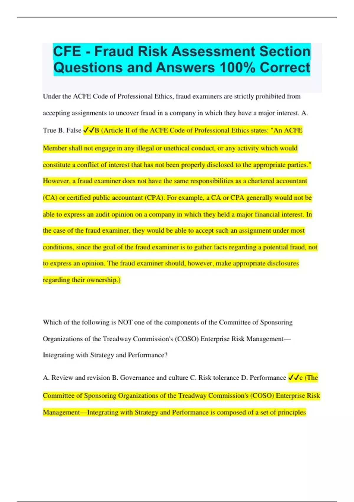 CFE - Fraud Risk Assessment Section Questions and Answers 100% Correct