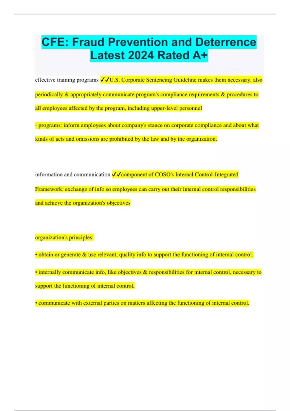CFE: Fraud Prevention and Deterrence Latest 2024 Rated A+