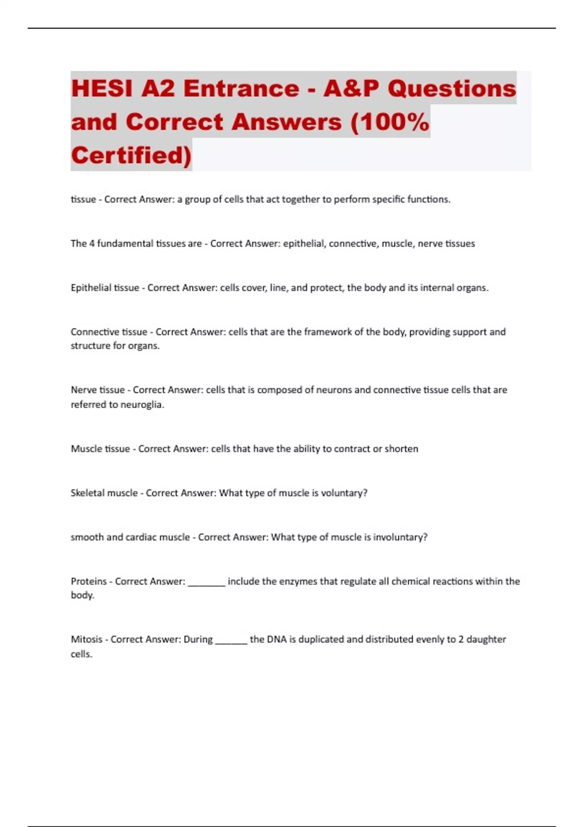 - HESI A2 Entrance - A&P Questis and Corect Answ