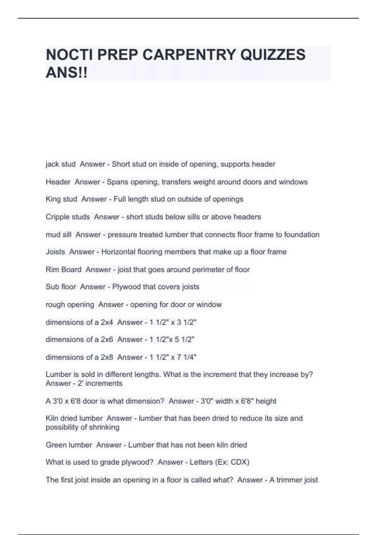NOCTI PREP CARPENTRY QUIZZES ANS!!