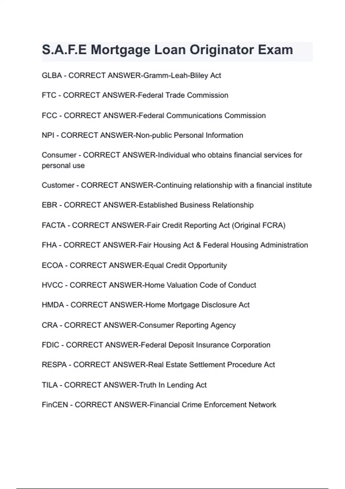S.A.F.E Mortgage Loan Originator Exam