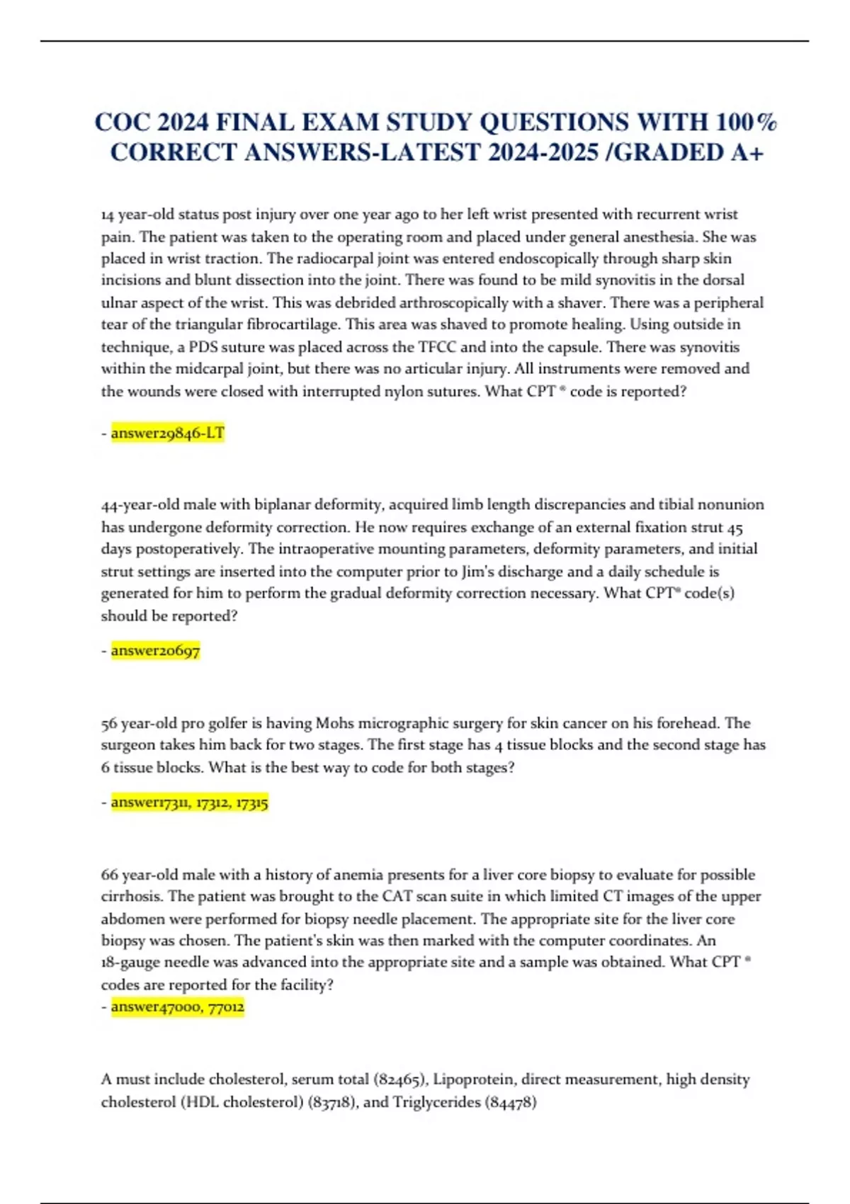 COC 2024 FINAL EXAM STUDY QUESTIONS WITH 100% CORRECT ANSWERS-LATEST /GRADED A+