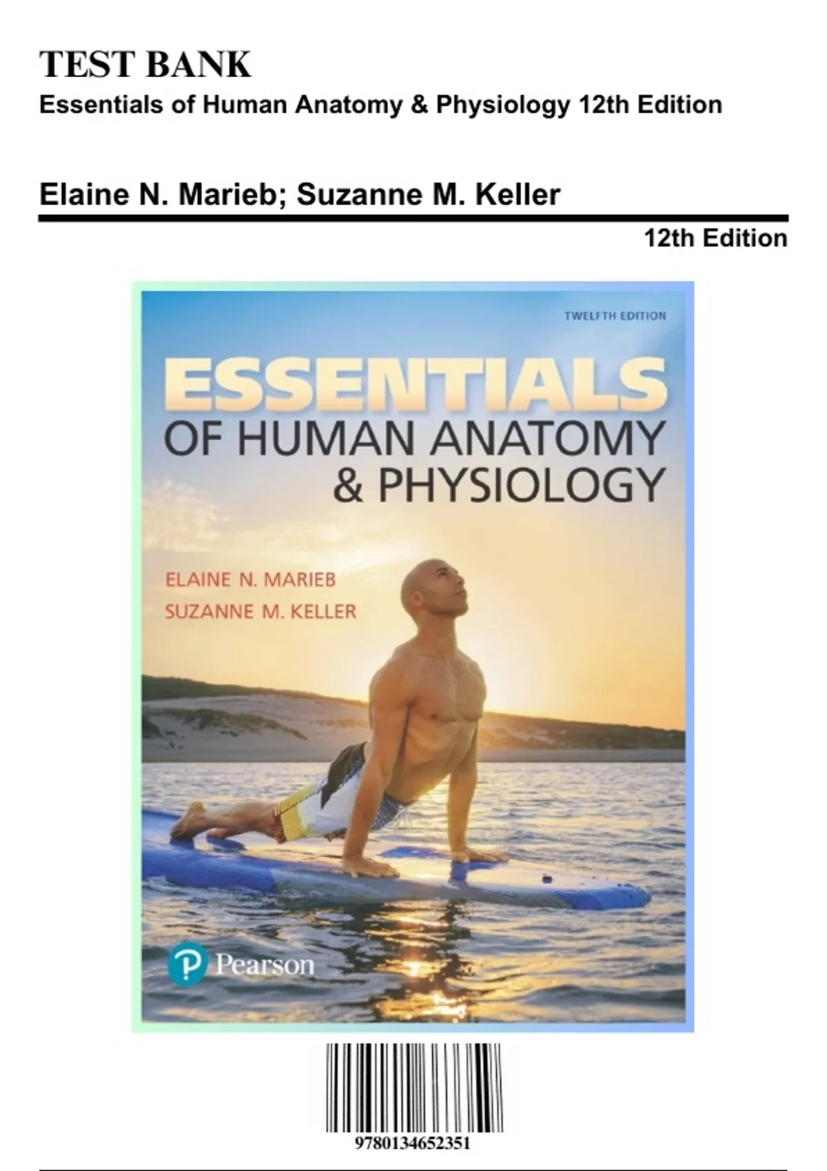 Test Bank for Essentials of Human Anatomy & Physiology 12th Edition, 12th Edition by Elaine N. Marieb, 9780134395326, Covering Chapters 1-16 | Includes Rationales