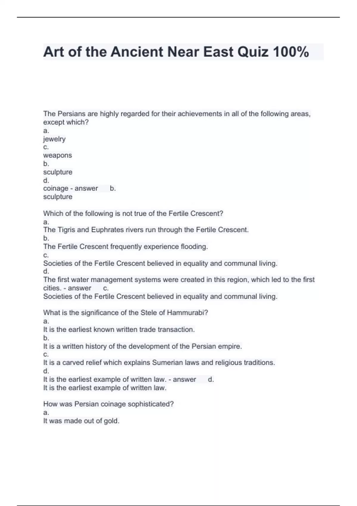 Art of the Ancient Near East Quiz 100% Questions and Answers