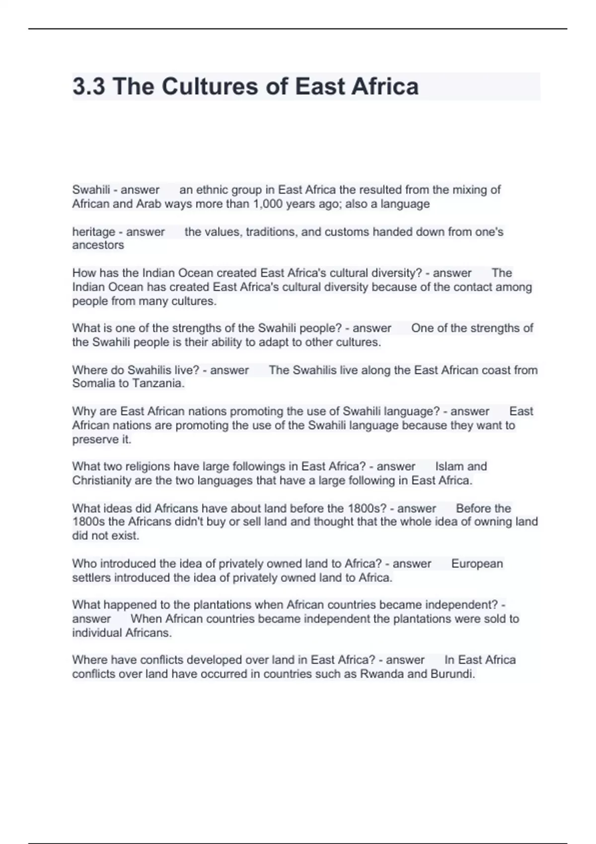 3.3 The Cultures of East Africa Questions and Answers 2024