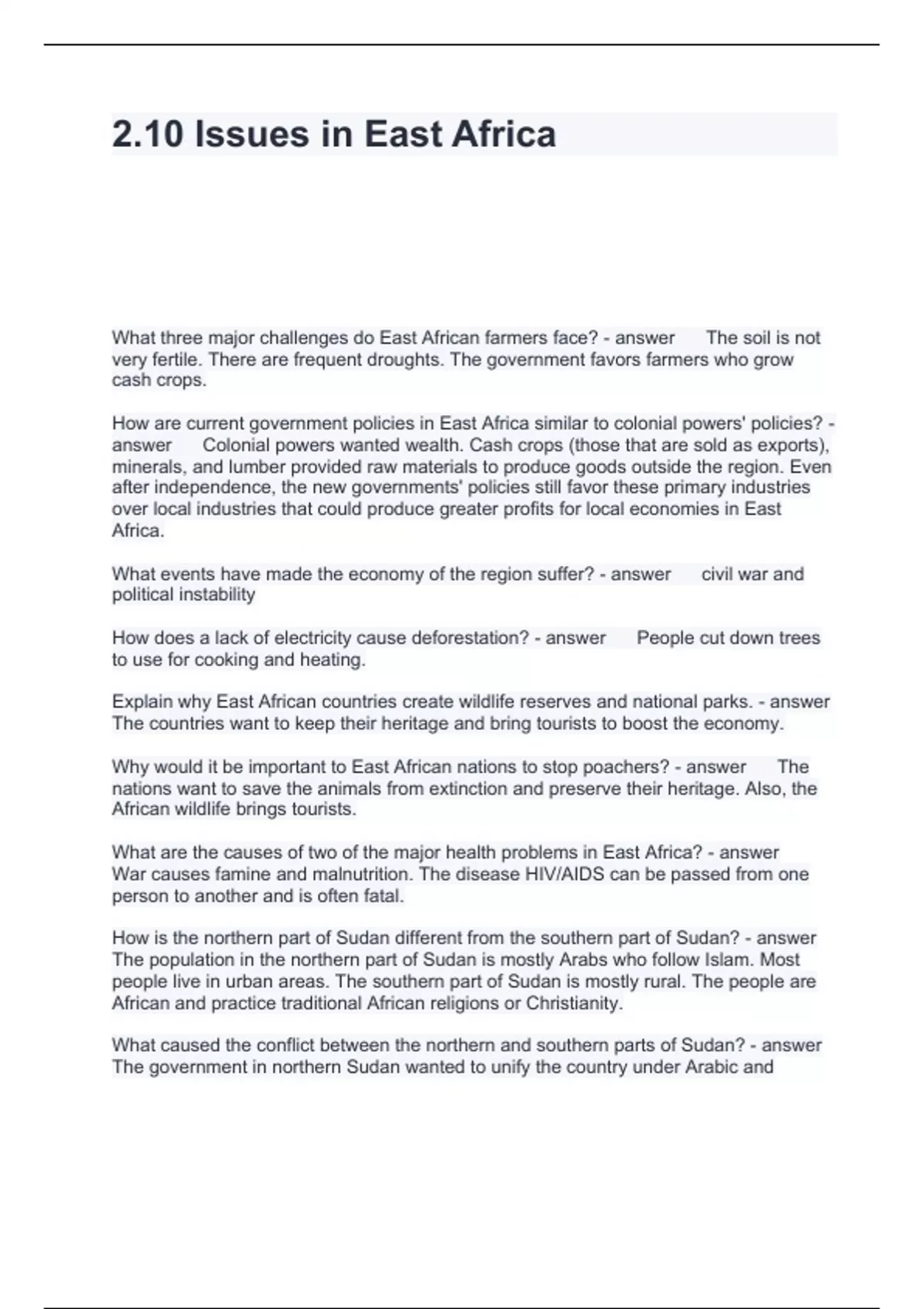 2.10 Issues in East Africa Questions and Answers 2024
