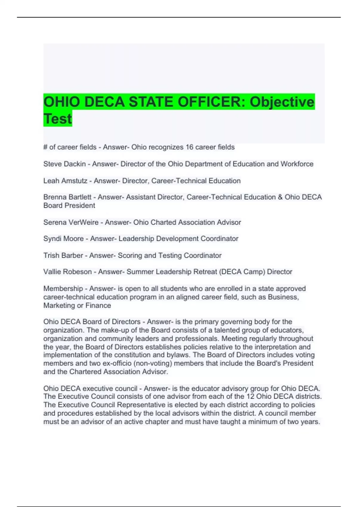 OHIO DECA STATE OFFICER Objective Test-Solved