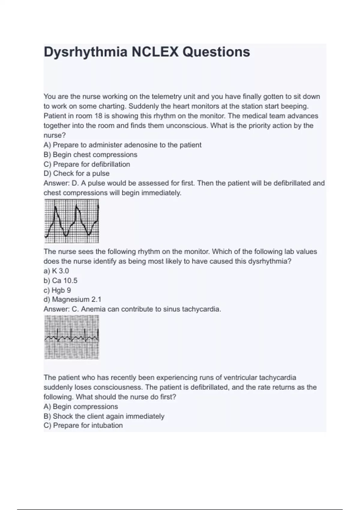Dysrhythmia NCLEX Questions with complete solution