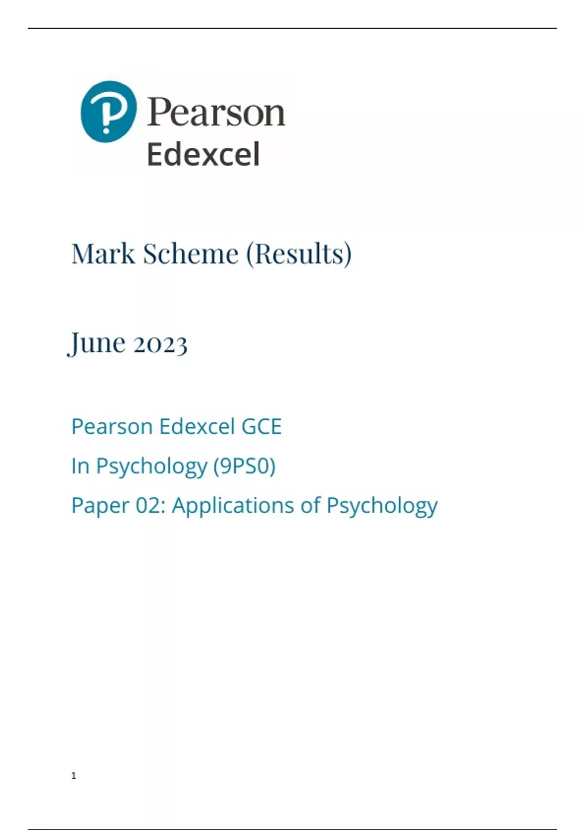 Pearson Edexcel GCE A level Psychology Paper 2 9PS0/02: Applications of Psychology Mark scheme for June 2023