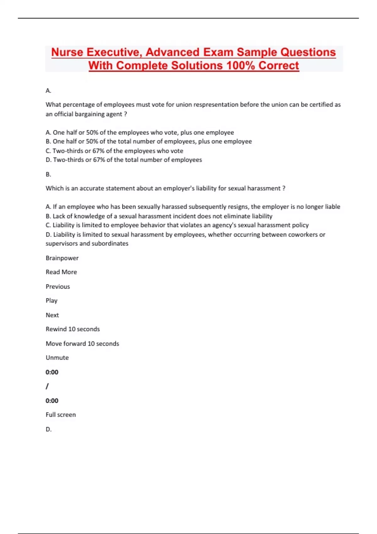 Nurse Executive, Advanced Exam Sample Questions With Complete Solutions 100% Correct