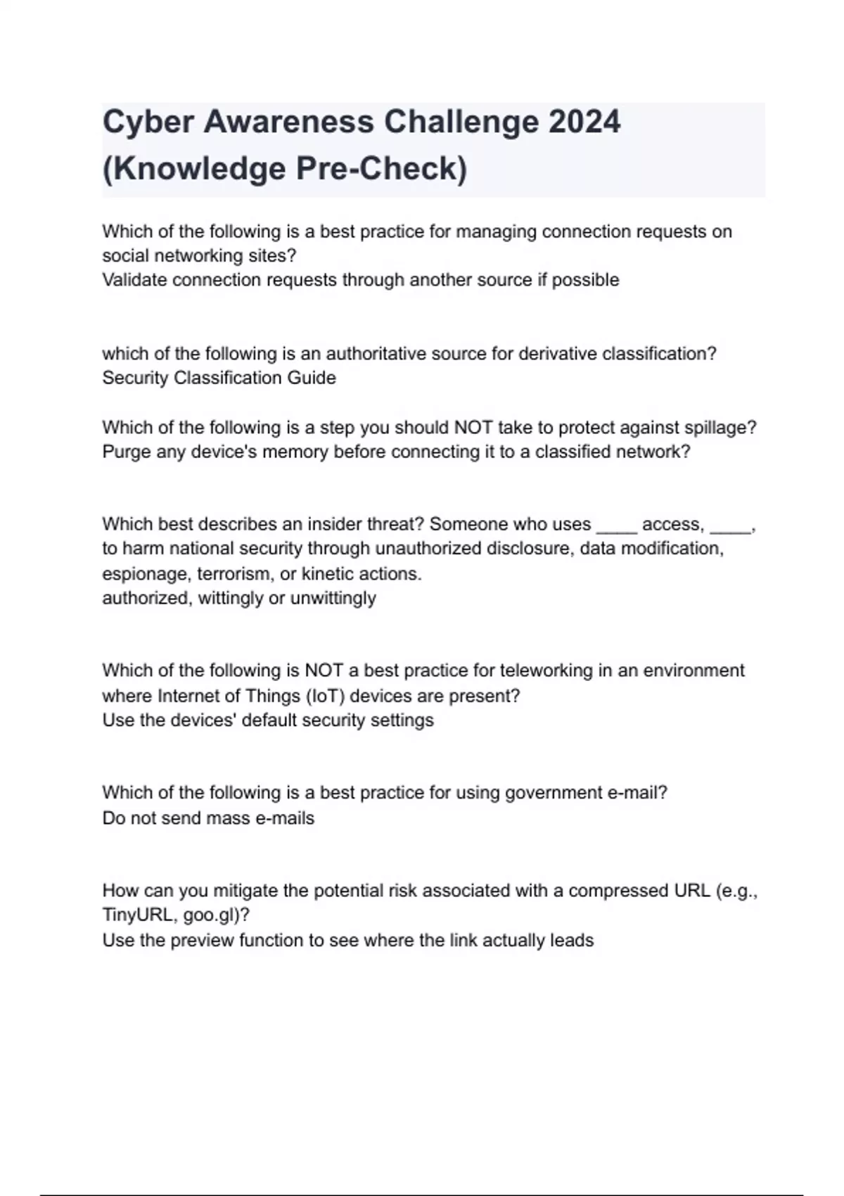 Cyber Awareness Challenge 2024 (Knowledge Pre-Check)
