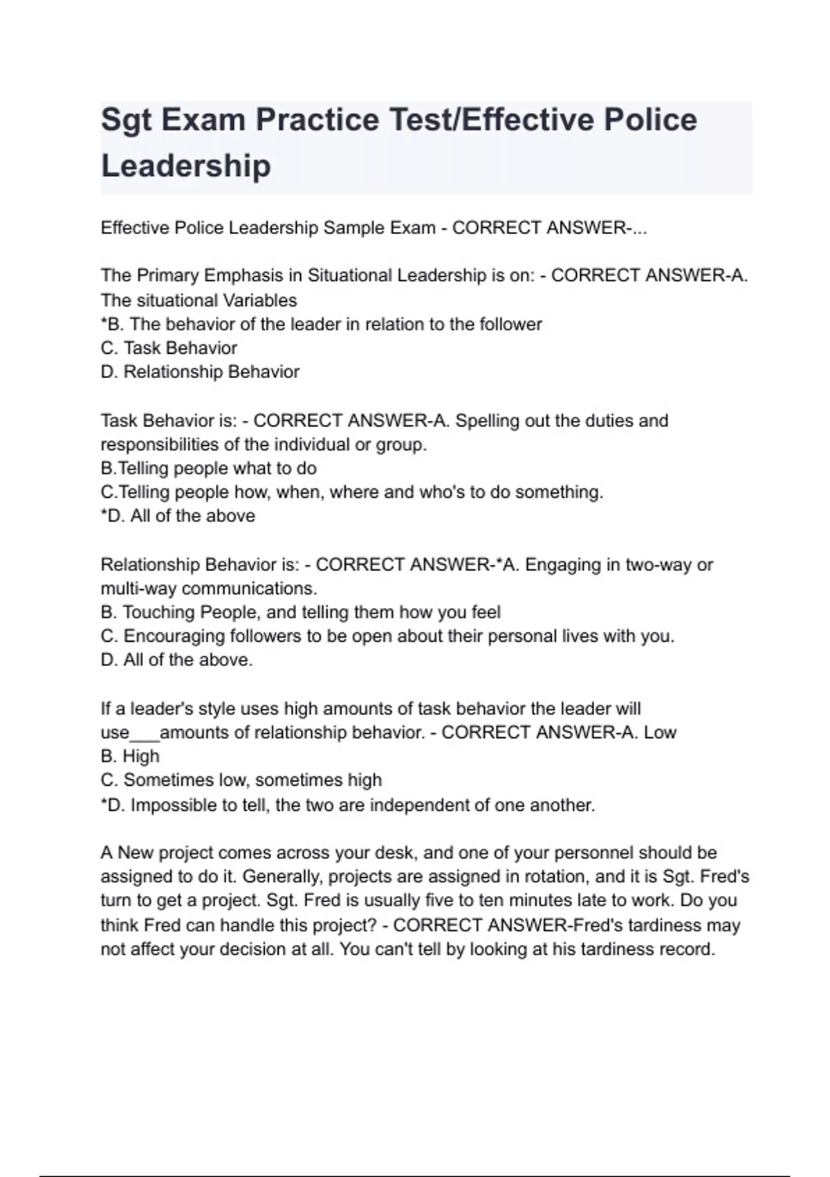 Sgt Exam Practice Test_Effective Police Leadership