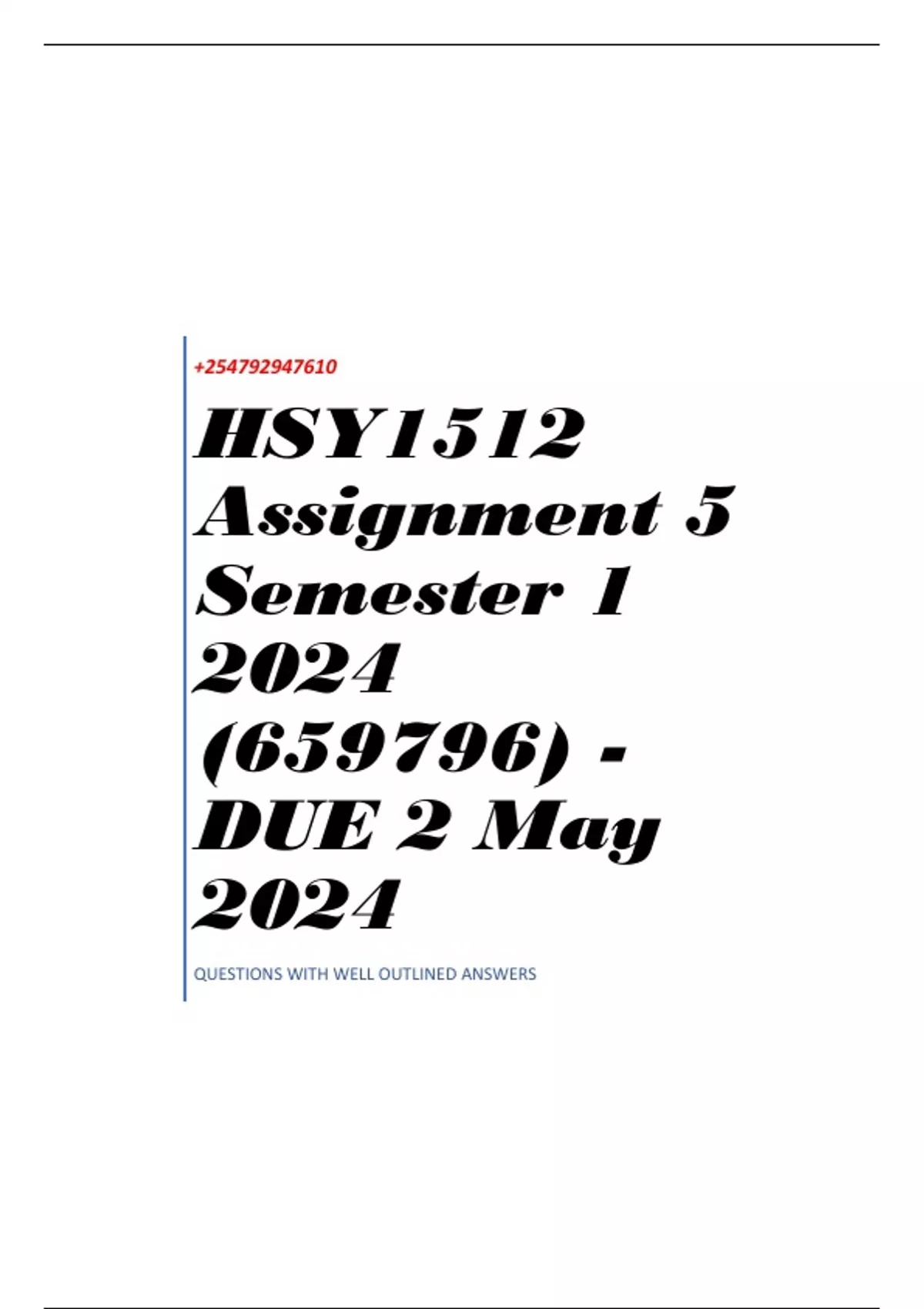 , HSY1512 Assignment 5 Semester 1 2024 (659796) - DUE 2