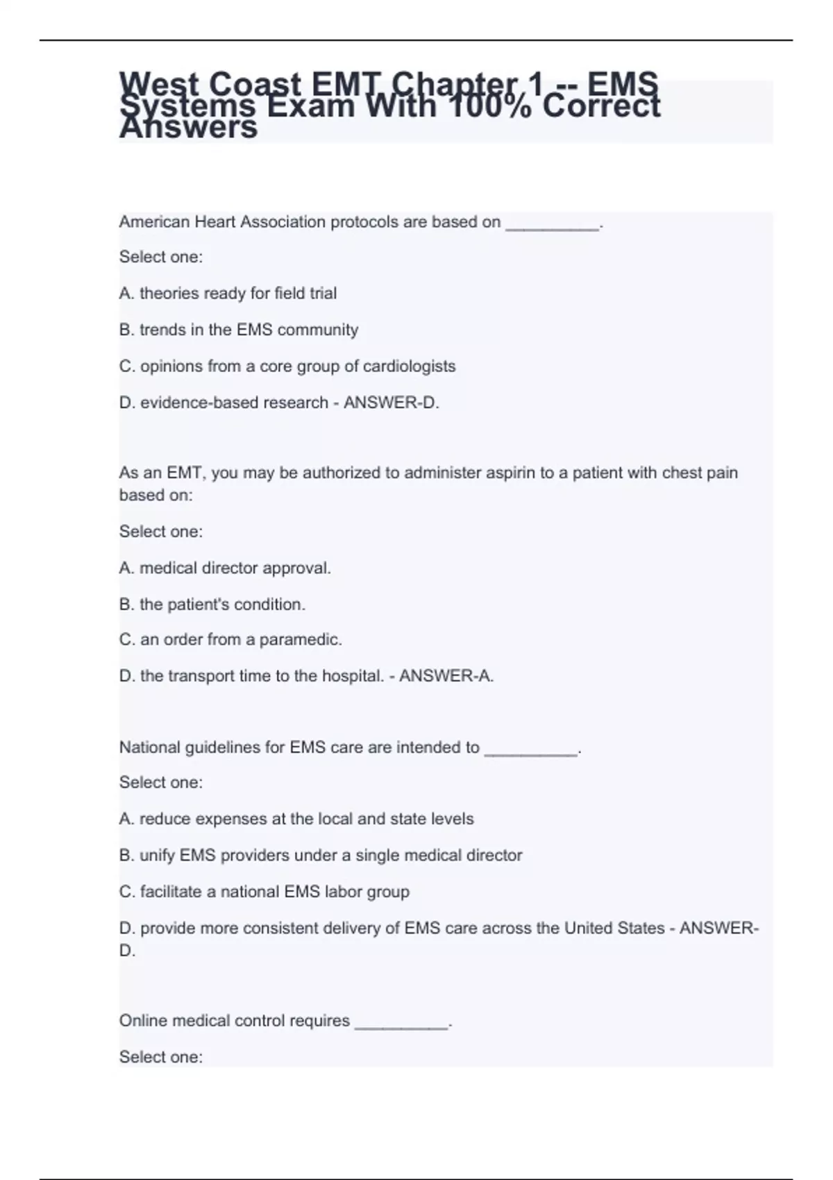 D. provide more consistent delivery of EMS care across the United States - ANSWER-