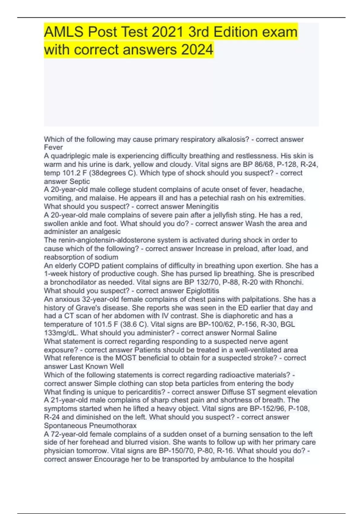 AMLS Post Test 2021 3rd Edition exam with correct answers 2024
