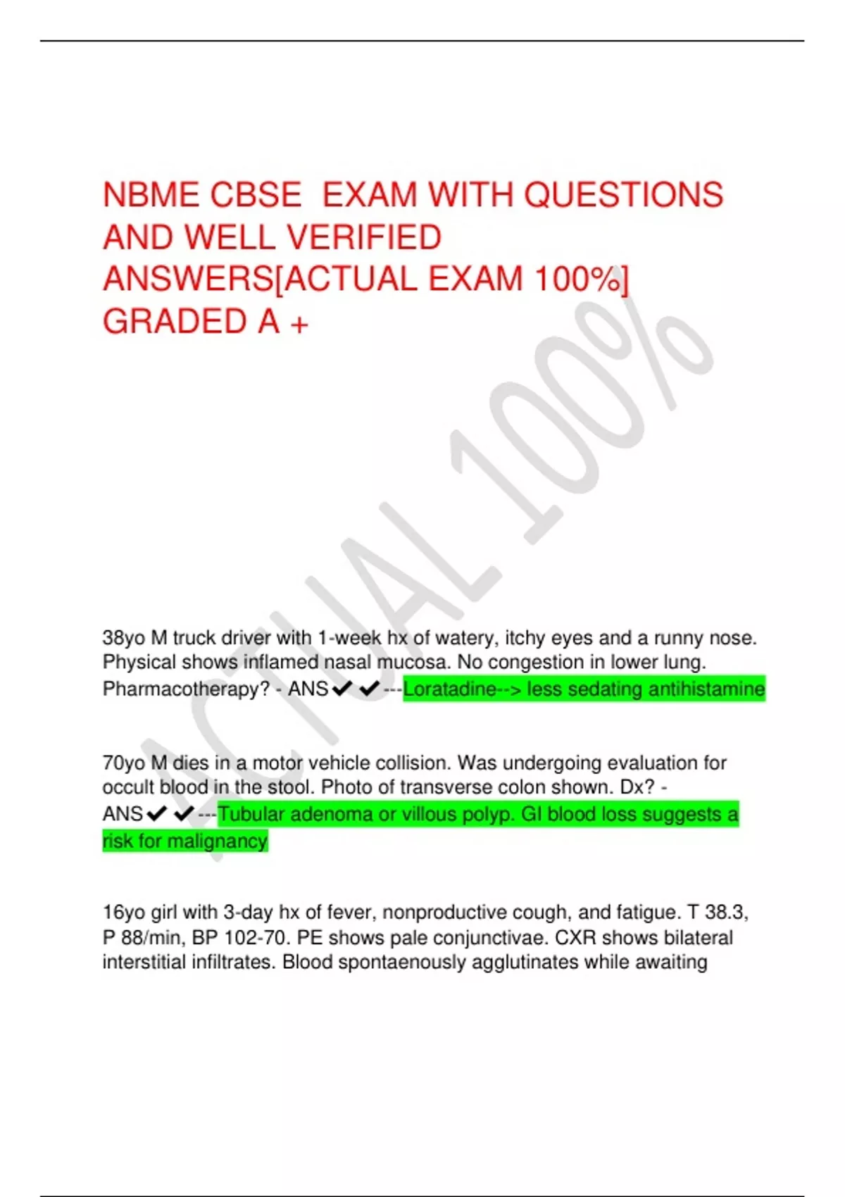 NBME CBSE EXAM WITH QUESTIONS AND WELL VERIFIED ANSWERS[ACTUAL EXAM 100%] GRADEDA +