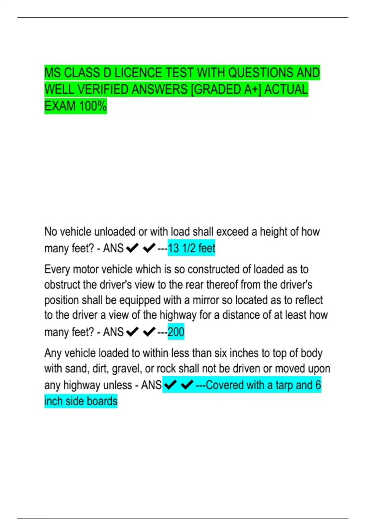 MS CLASS D LICENCE TEST WITH QUESTIONS AND WELL VERIFIED ANSWERS [GRADED A+] ACTUAL EXAM 100%