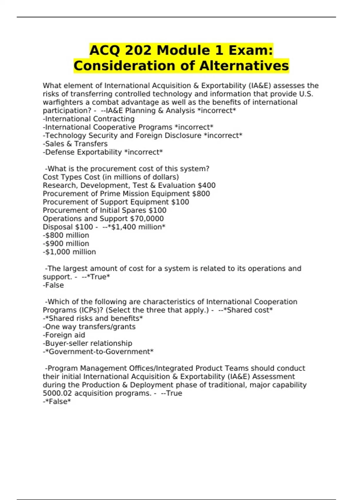 acq 202 module 1 exam consideration of alternativ